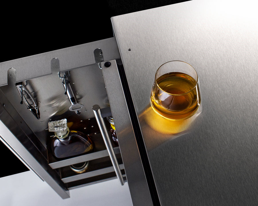 Summit SPR196OS24 24″ Wide Outdoor / Indoor Shallow-Depth All-Refrigerator – Stainless Steel Door, Slide-Out Storage Compartment