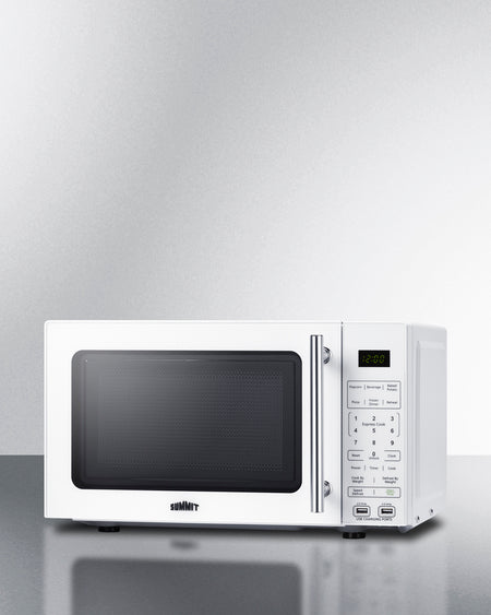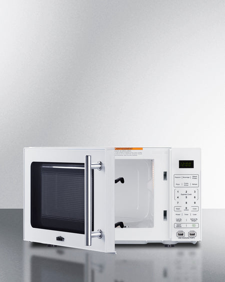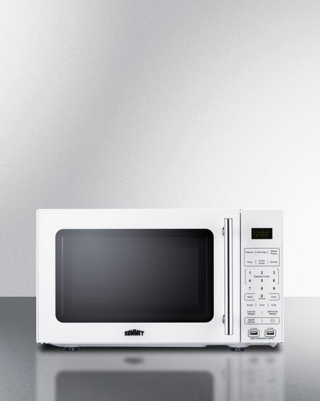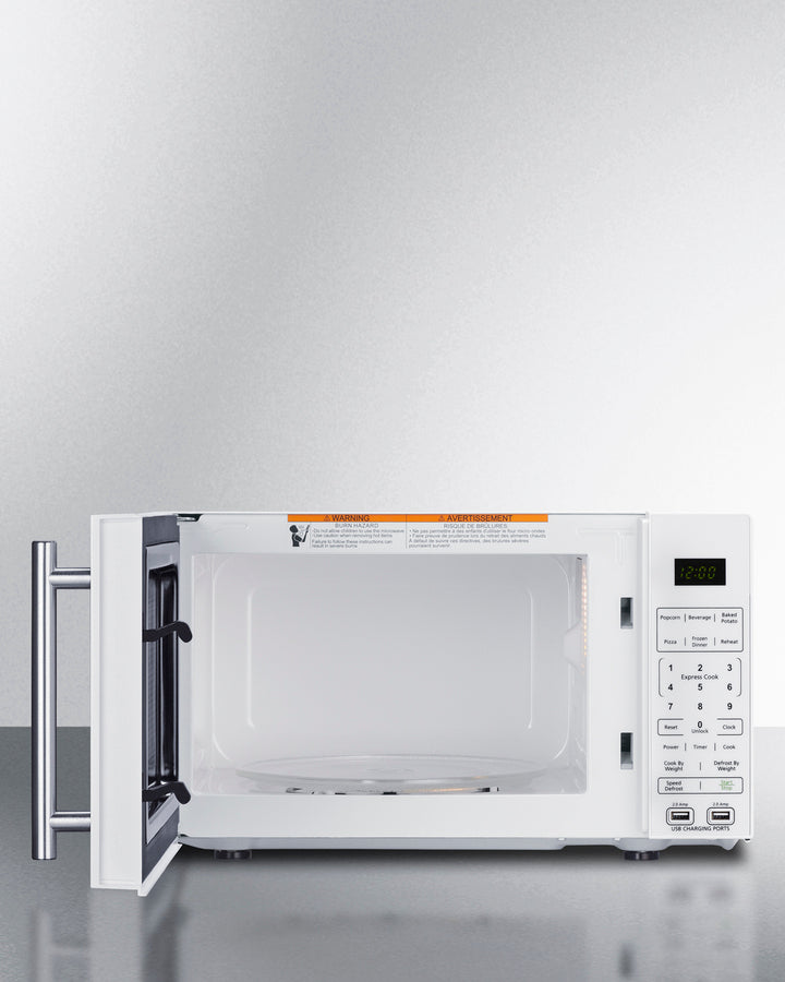 Summit SM904WA 0.7 cu. ft. Compact Countertop Microwave with USB Ports & Power Allocator – White Cabinet