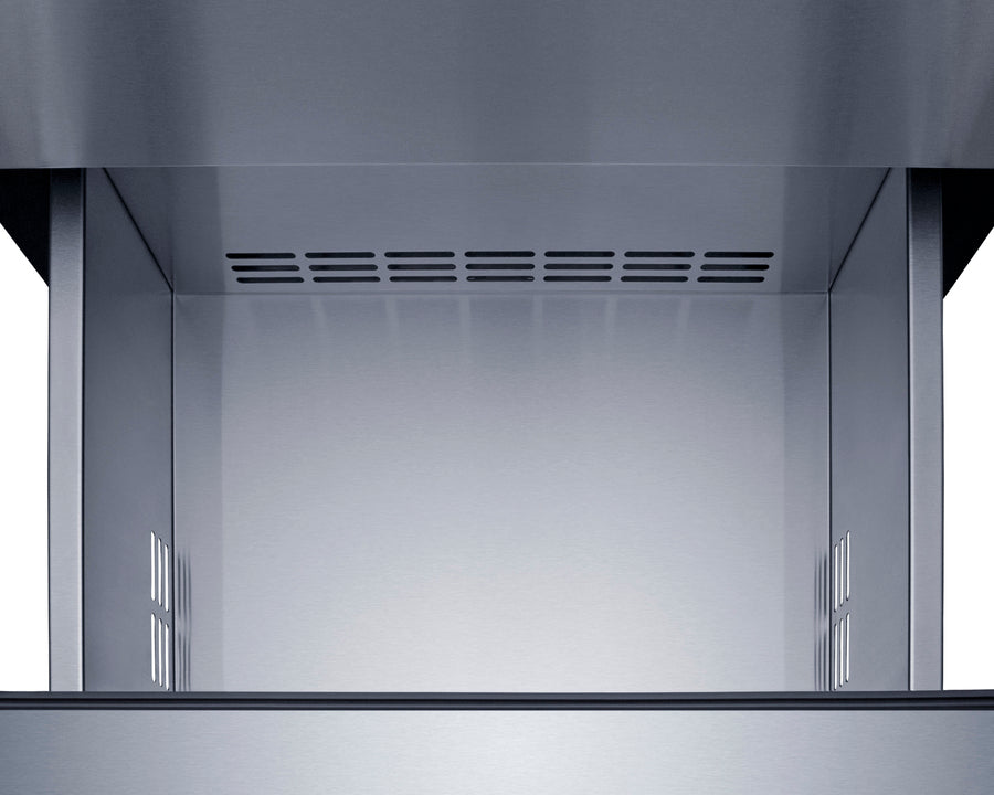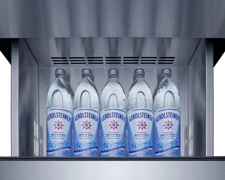 Model SP6DS3DOS is sized with an easy-fitting 24" footprint constructed for safe use in outdoor kitchens. The front-breathing system allows built-in installation, while the fully finished cabinet enables freestanding use. The three drawers are constructed from stainless steel inside and out for lasting durability and easy-to-clean convenience. Professional handles complete the look. This unit has a sealed back to protect it from the elements and a right angle plug for added space savings.