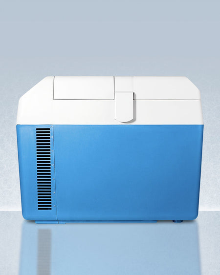 This lightweight compressor-operated unit can be plugged into the 12V DC auxiliary power outlet/lighter socket inside any vehicle, as well as 24V sources. We also provide an AC adapter to allow the SPFZ25 to be plugged into a 110V electrical wall outlet. With a resilient blue plastic exterior and sturdy side handles, this unit is easy to carry for mobile applications, such as off-site vaccination clinics. An optional transport trolley (Trolley26) is available for purchase.