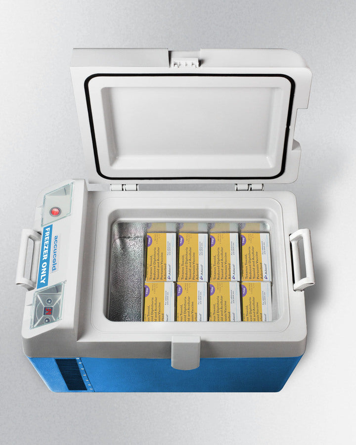 Accucold brings advanced convenience to on-the-go vaccine refrigeration with the SPFZ25, a fully featured portable freezer ideal for transporting sensitive materials while maintaining the integrity of the cold chain.