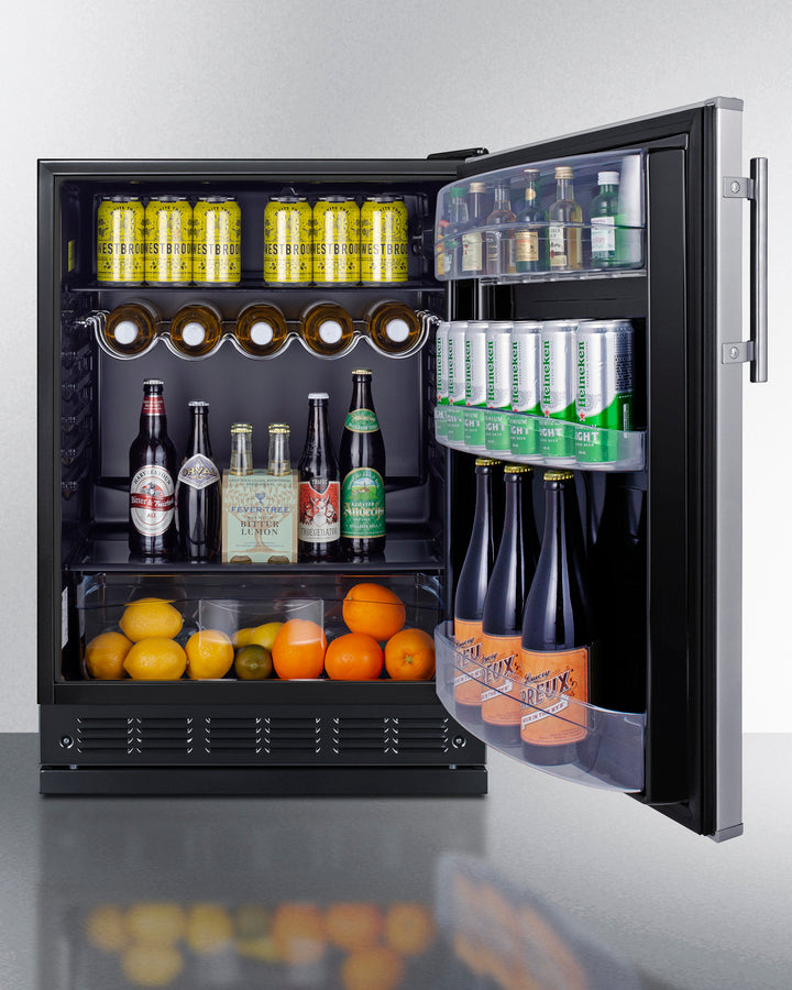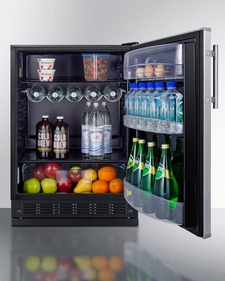 Summit FF6BK2SSRS 24″ All-Refrigerator – 5.8 cu ft, Counter-Height, Stainless Steel Door, Black Cabinet