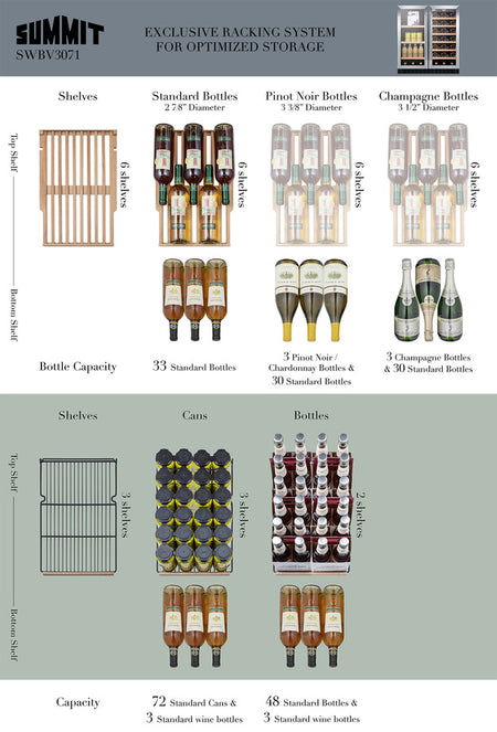 With its attractive style and user-friendly features, the SWBV3071 is a great addition to any home looking to bring versatile beverage storage under the counter.