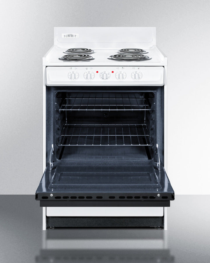 Summit WEM630DK 24″ Wide Electric Coil-Top Range – 2.92 cu ft Oven, 24″ Depth, Black Glass Door / White Cabinet