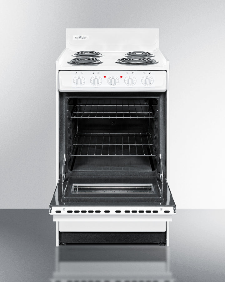 Summit WEM110W 20″ Wide Electric Coil Range – 4 Burners, 2.46 cu. ft Oven, White Finish