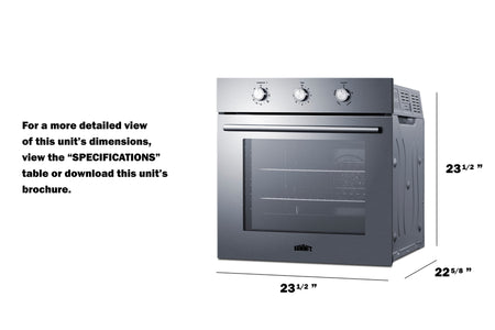 Summit's cooking solutions include 24" wide gas wall ovens specially sized to fit standard 23.23" H x 23.62" W cutouts perfect for kitchens with limited space.