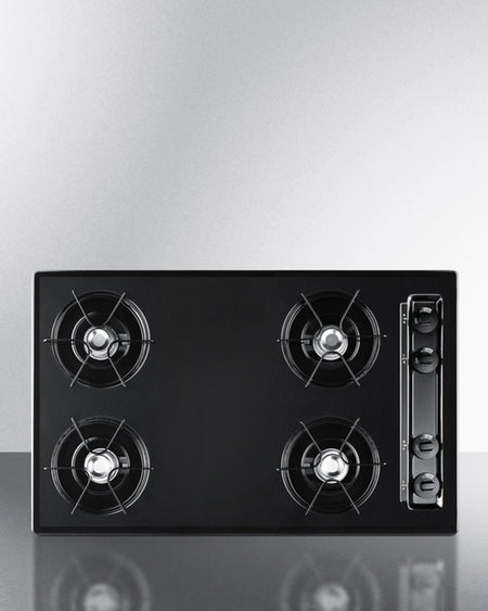 Summit TNL053 30″ Wide 4-Burner Gas Cooktop – Black Porcelain Surface, Spark Ignition, LP-Convertible