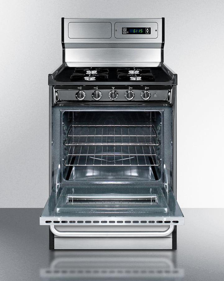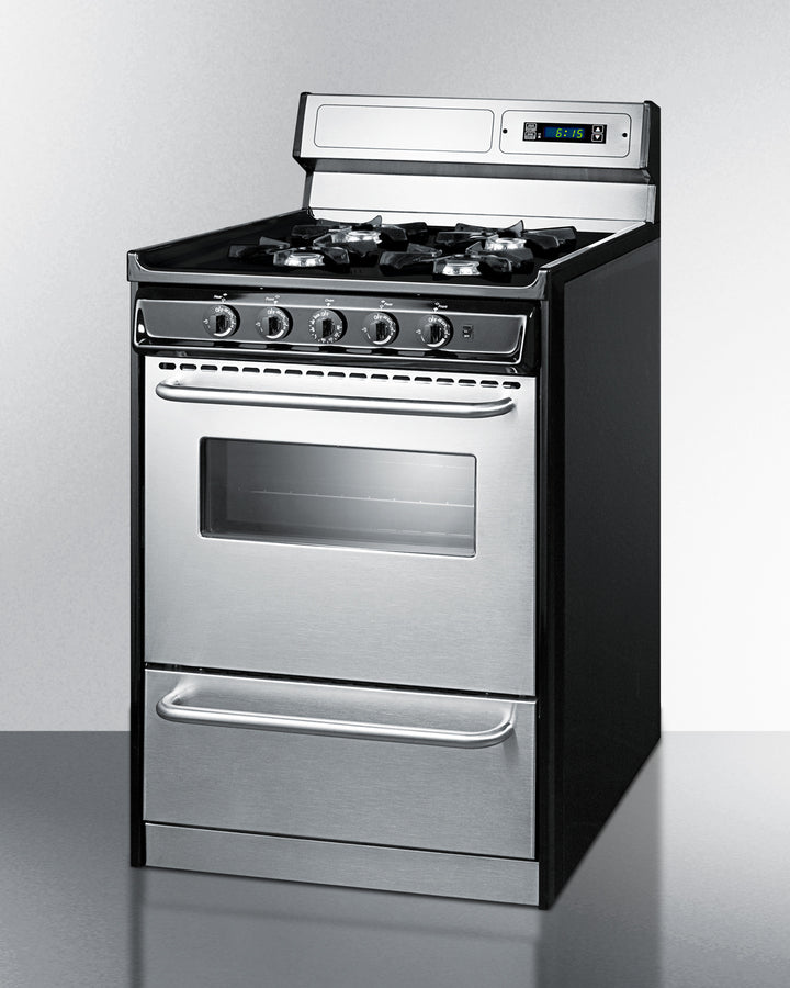 Summit TNM6307BKW 24″ Wide Gas Range – 4 Open Burners (9,000 BTU Each), 2.92 cu ft Oven, Stainless Steel Door / Black Cabinet