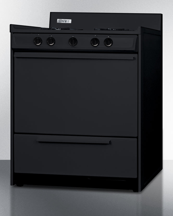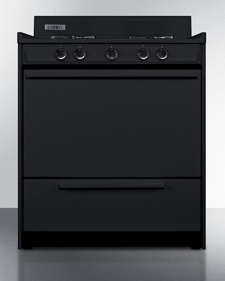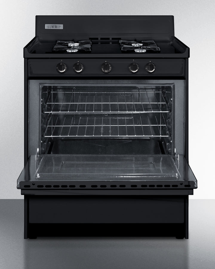 Summit TNM2107C 30″ Wide Gas Range – Black Finish, 4 Open Burners (9,000 BTU), 3.69 cu ft Oven, 24″ Depth Compact Fit