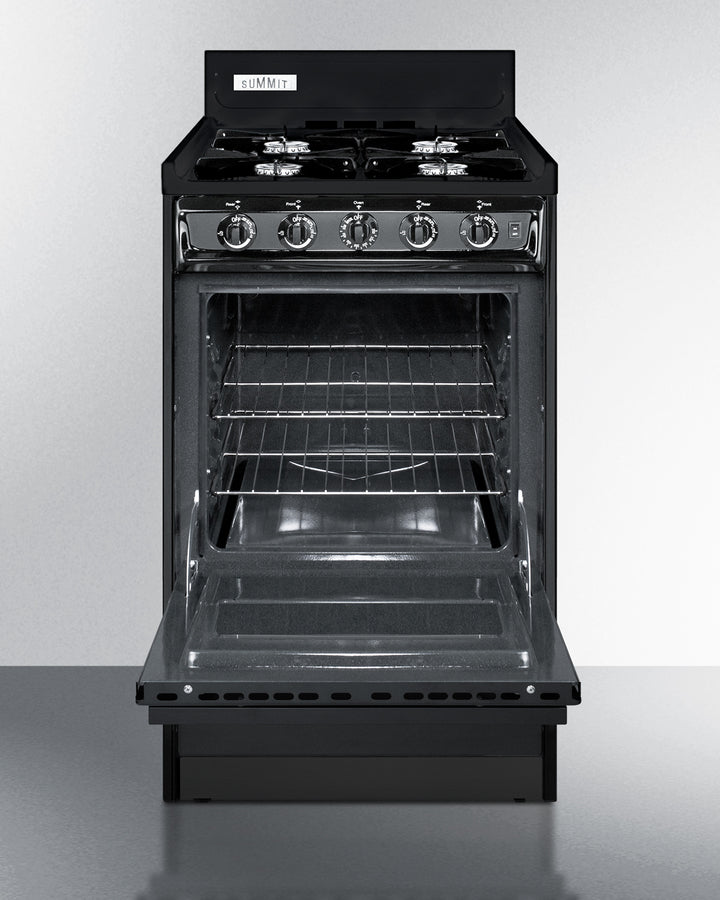Summit TNM1107C 20″ Wide Gas Range – 4 Open Burners, 2.46 cu ft Oven, Jet Black Finish