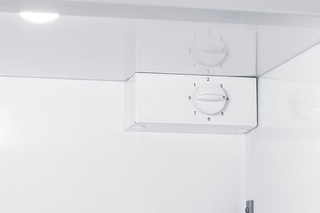 Model UFM19W is a front-opening freezer with an 18.3 cu.ft. interior storage capacity. Manual defrost operation ensures a more stable interior with none of the warming cycles that can compromise temperature in traditional frost-free cooling systems. The dial thermostat is located inside to prevent accidental temperature adjustments, with a thermometer/alarm mounted externally to ensure a readout of the current and high/low interior temperature is visible without opening the door. The temperature probe is encased in glass beads and positioned in a fixed shelf in the center of the unit to best simulate the temperature of stored items. We include an additional probe hole to accommodate additional monitoring equipment. Cantilevered shelving provides more flexibility in storage, with tight spacing between the pilasters so you can adjust as needed. This unit has a flat door liner to accommodate deeper trays. An automatic LED light makes it easy to see the full interior.