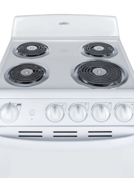 Summit RE203W 20″ Wide Electric Coil Range – 4 Burners, 2.3 cu ft Oven, White Finish
