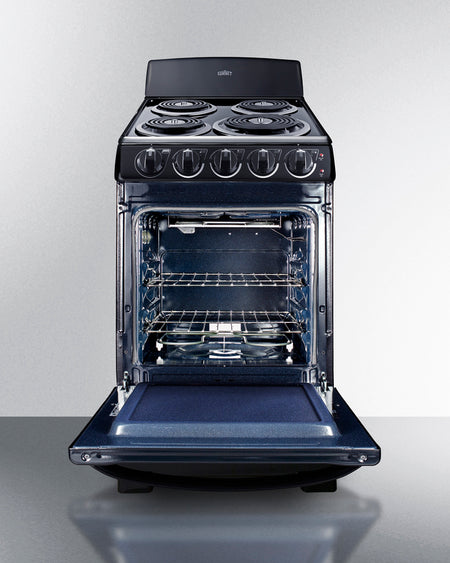 Summit RE2031B 20″ Wide Electric Coil Range – Black Finish, 4-Burner Cooktop, 2.3 cu ft Oven