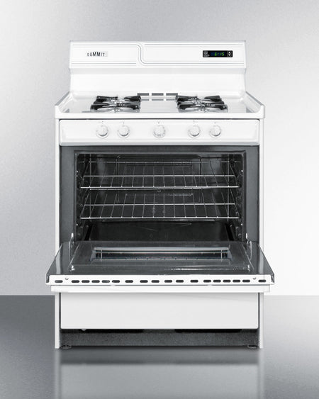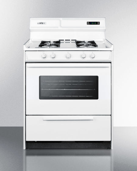 Summit WNM2307KW 30″ Wide Gas Range – White Finish, 4 Open Burners, 3.7 cu ft Oven