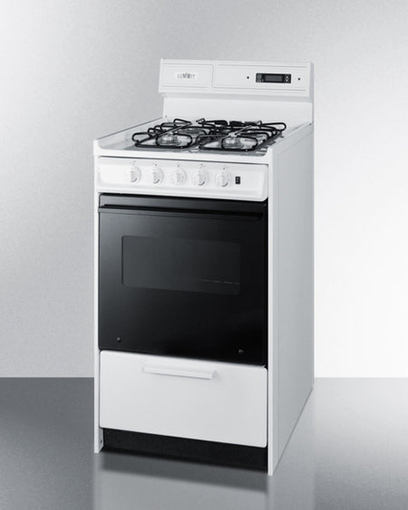 Summit WNM1307DK 20″ Wide Gas Range – 4 Open Burners, 2.46 cu ft Oven, White Cabinet with Black-Glass Door