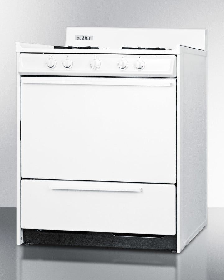 Summit WNM2107 30″ Wide Gas Range – White Finish, 4 Open Burners (9,000 BTU), 3.7 cu ft Oven, Shallow 24″ Depth